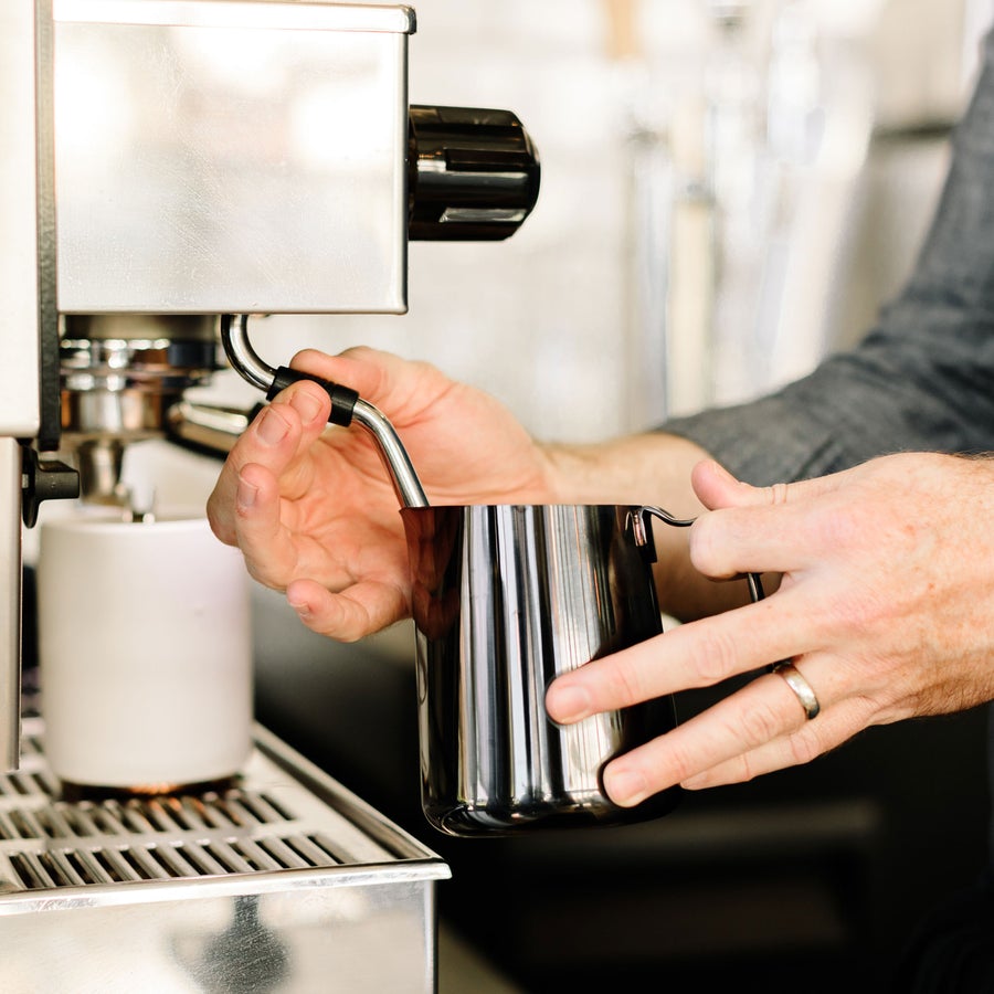 Meet Eddy Steaming Pitcher, a precision tool for pouring latte art. The tapered body spins milk more consistently for silky smooth micro-foam while the sharp crease allows for an intuitive pour. Great for any milk or non-dairy based drinks from cortado to latte sized